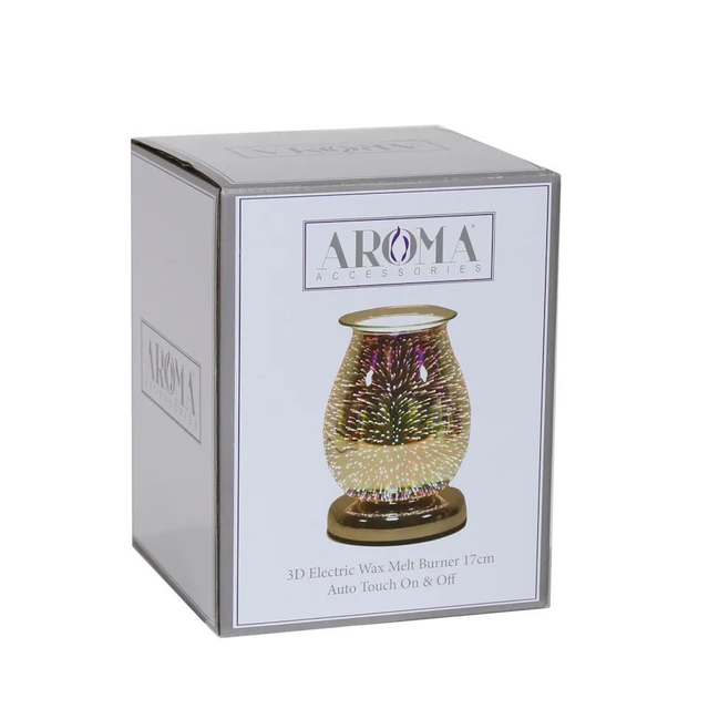 This Wax Melter features striking designs with a 3D effect on a silver background. The 3D Burst has Touch Sensitive Technology which means touching the base of the melter will give you three different levels of heat and light. This Aroma wax melter comes with two bulbs